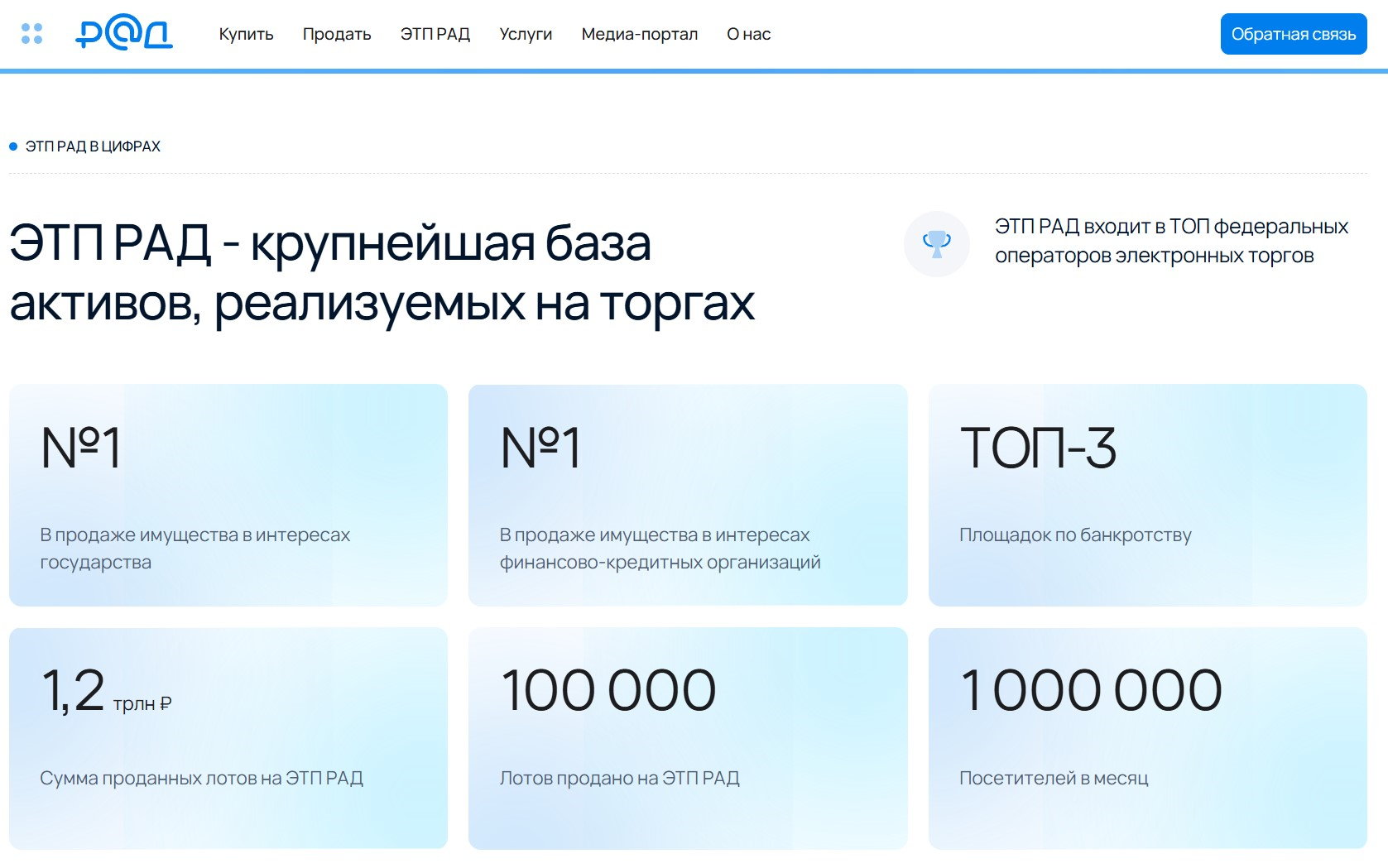 Свою площадку АО Российский аукционный дом (АО «РАД») запустил 15 лет назад. ЭТП одобрили Федеральная антимонопольная служба (ФАС) и Министерство экономического развития Российской Федерации. Площадка от РАД входит в перечень восьми федеральных ЭТП.