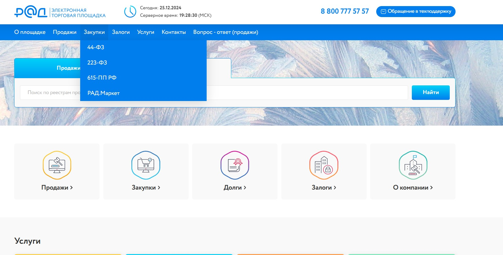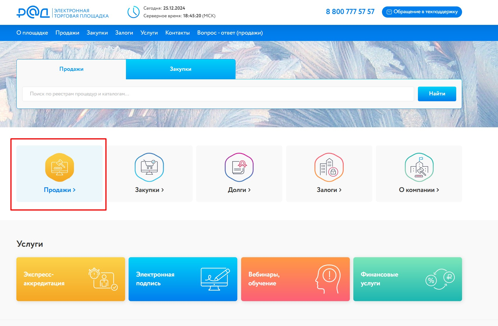 Здесь проводят электронные торги по продаже и покупке государственного, муниципального и частного имущества по всей стране. Есть и другие услуги: оценивают лоты, консультируют, выдают займы для участия в тендерах.
