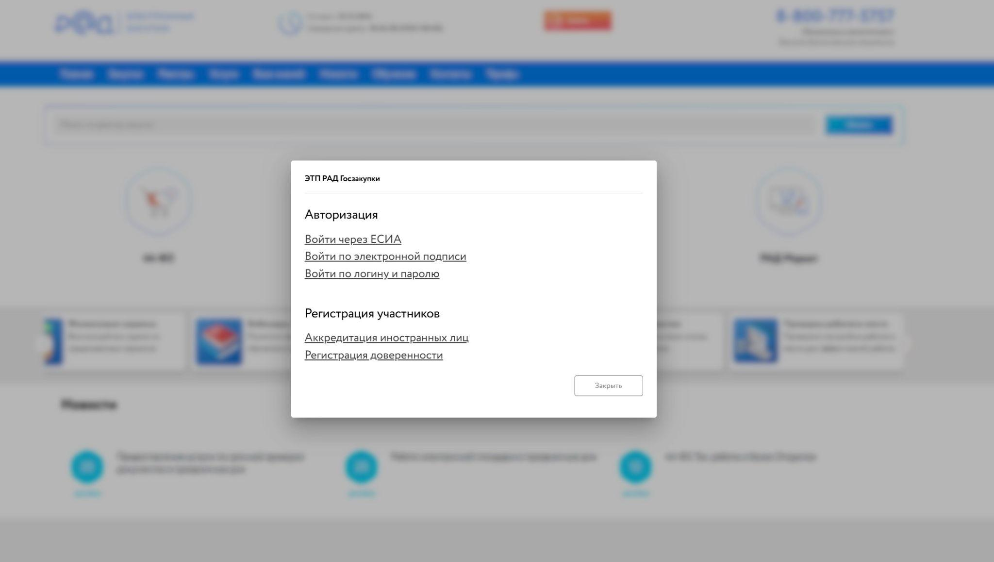 Зарегистрироваться здесь можно только через ЕИС.