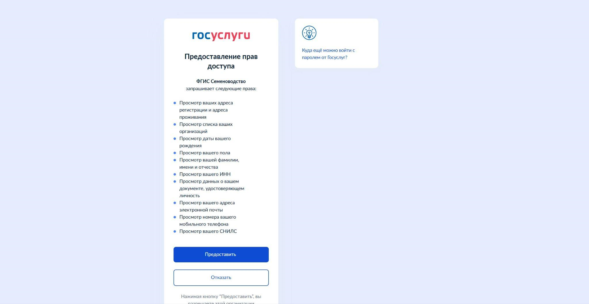 Авторизация на портале государственных услуг — следующий шаг для взаимодействия с системой «Семеноводство». Это единственный доступный способ входа для всех видов пользователей, кроме образовательных учреждений.
