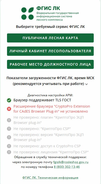 В корректной настройке компьютера поможет размещённая во ФГИС ЛК инструкция. Она актуальна, прежде всего, для тех, кто не работал в ЕГАИС Лес. Пользователям этой системы достаточно сверить настройки с требованиями и убедиться в их соответствии.