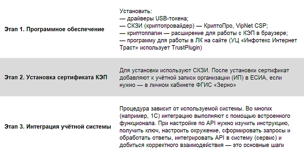 Для правильной подготовки компьютера рекомендуем изучить пользовательскую и рабочую документацию ФГИС «Зерно» — инструкция есть для каждой категории участников и версии API.