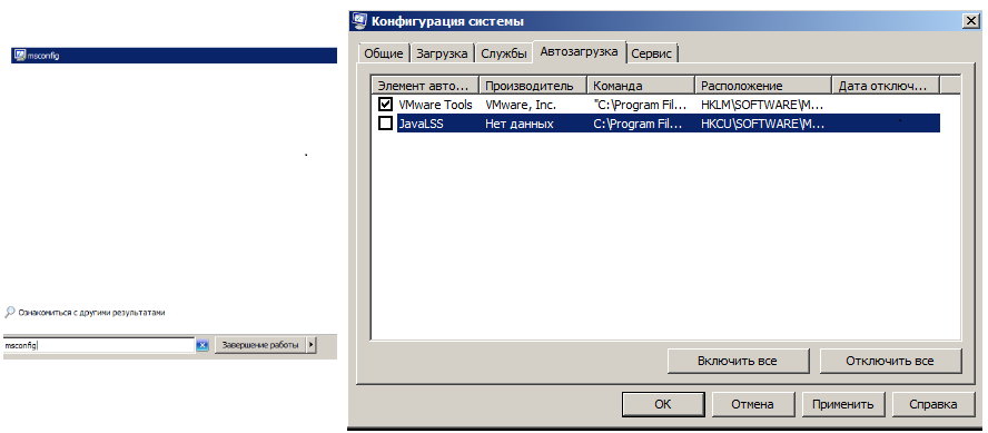 В ОС Windows 7 откройте меню «Пуск», в поле «Найти программы и файлы» введите msconfig. Выберите вкладку «Автозагрузка» и снимите галочку напротив приложения JavaLSS.exe.