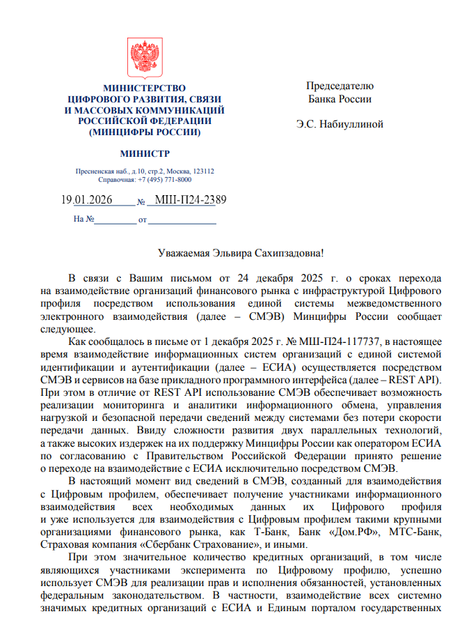 Перенос сроков необходим для обеспечения плавного технологического перехода всех участников цифровой экосистемы, включая кредитные организации и поставщиков государственных услуг, на новые регламенты взаимодействия.