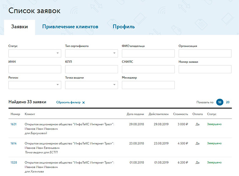 Личный кабинет — ваш персональный раздел на сайте «Инфотекс Интернет Траст». Используйте его для быстрого и простого выпуска сертификатов электронной подписи.